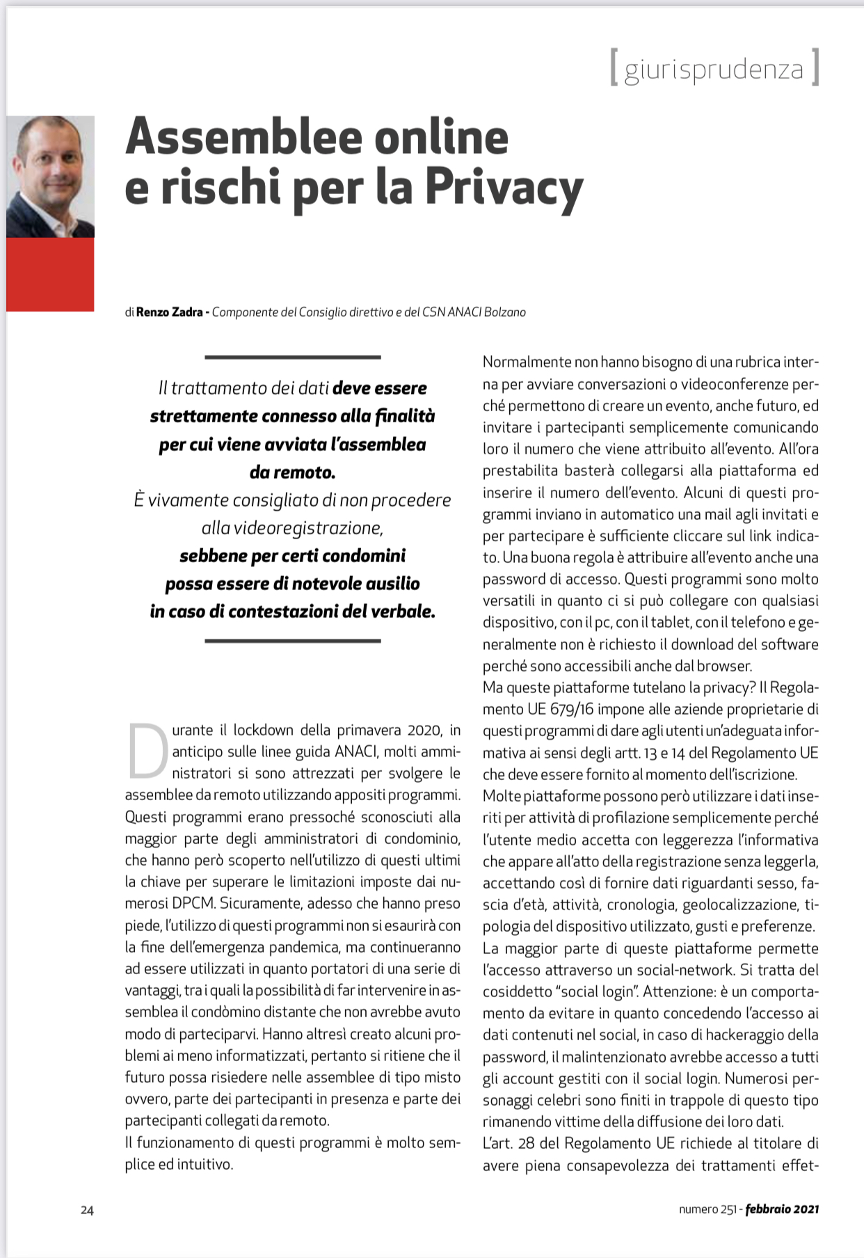 Vi riporto la mia intervista per Condominio Solutions.